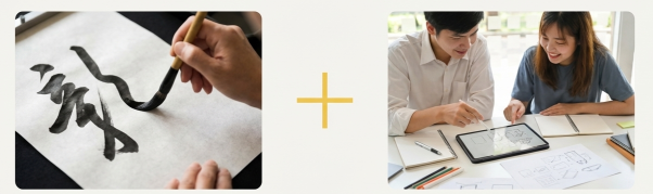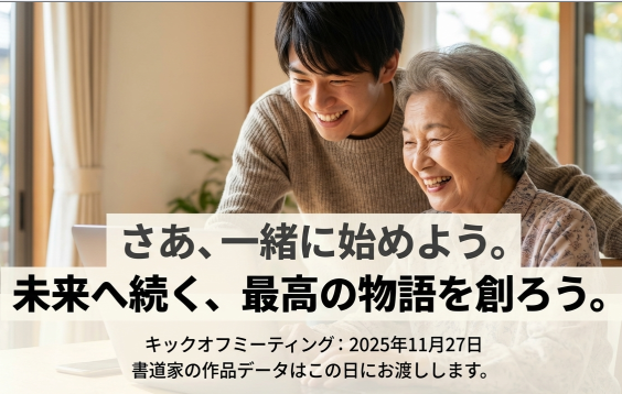 書道家の書や学生の斬新な発想を融合させることで、高齢者の精神的な支えと未来への活力を生み出すことが期待されるフォートアルバム